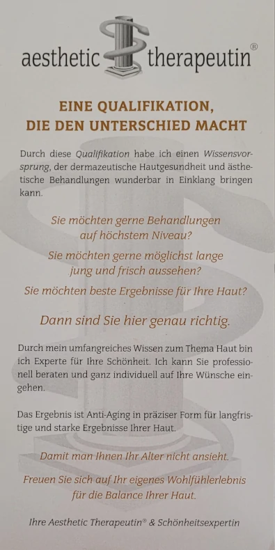 - Zusatz-Qualifikation: Aesthetic Therapeutin®